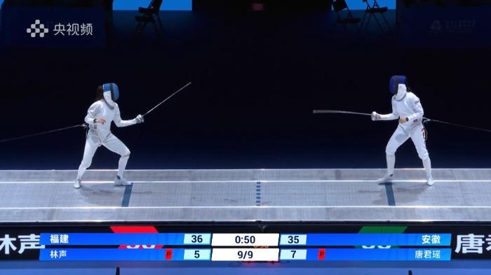 决赛共进行9轮,最后一轮,唐君瑶一度将比分追到只差一分,但福建队此前刚刚获得本届全运会女子重剑个人冠军的林声也状态正盛,守住了福建队的胜利果实,最终安徽女子重剑憾负,获得亚军。