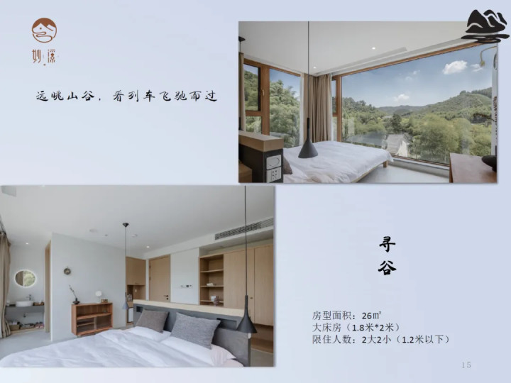 妙溪的房间布局将山水巧妙地铺陈在眼前,窗户就是自然取景框,每一面窗都框着不同的山景。你可以看到窗外盎然的绿意,也能看到傍晚的彩霞将山景染成暖金色。夏天,可以到民宿的无边泳池游泳,庭院的白色沙滩也布置得相当惬意,拍照时竟有几分海岛度假的错觉。冬天,民宿还开放有温泉池,能让你体验舒筋活络的畅快。
