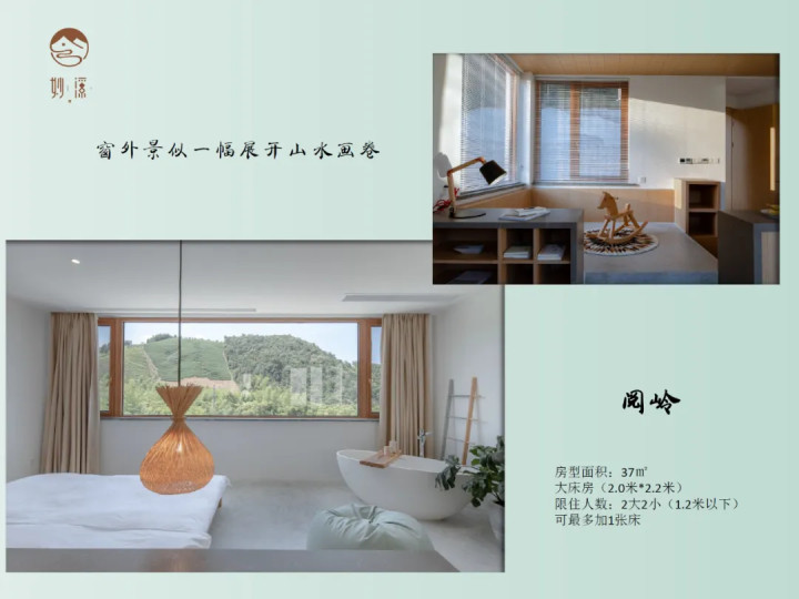 在妙嬉,从白天到夜晚,你都不会无聊。白天,你可以在泳池戏水,或是去图书室翻书,午后可以到咖啡厅喝杯手冲,看阳光在绿植间跳跃,晚上你可以眺望远山,数星星。