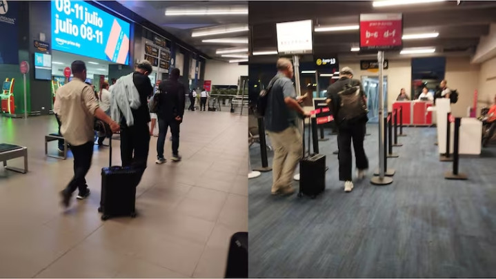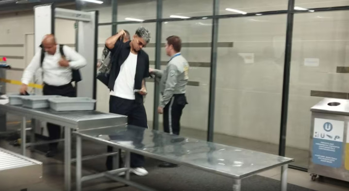 在哥伦比亚巴兰基亚机场,迪亚斯被拍到背着背包,穿着夹克,戴着墨镜,独自一人通过机场安检去搭乘飞机。