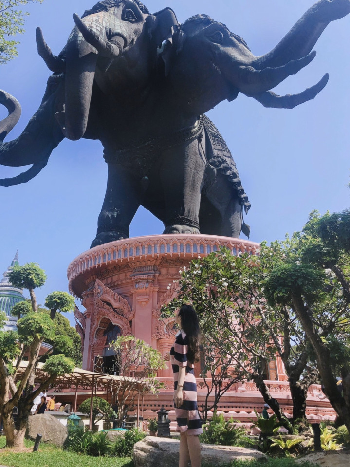 因为 三面神像 不是很大所以游客基本都在一堆,下午去的话人应该会少很多,我们拼尽全力在没有人的时候拍拍拍了好久😥但是还是不理想,所以一定要早上去 暹罗古城 下午再来粉象博物馆‼️