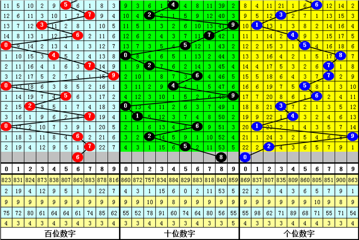 1、号码0-9出现开出频次分别为:号码3出现20次,号码0出现18次,号码7出现17次,号码2、6出现15次,号码4出现14次,号码8出现10次,号码5、9出现9次,号码1出现8次。一般来说,表现最冷的三码:1、5、9不会同时出现,本期杀一码:9;表现最热的四码:0、2、3、7中一般会出现奖号,本期注意号码;0。